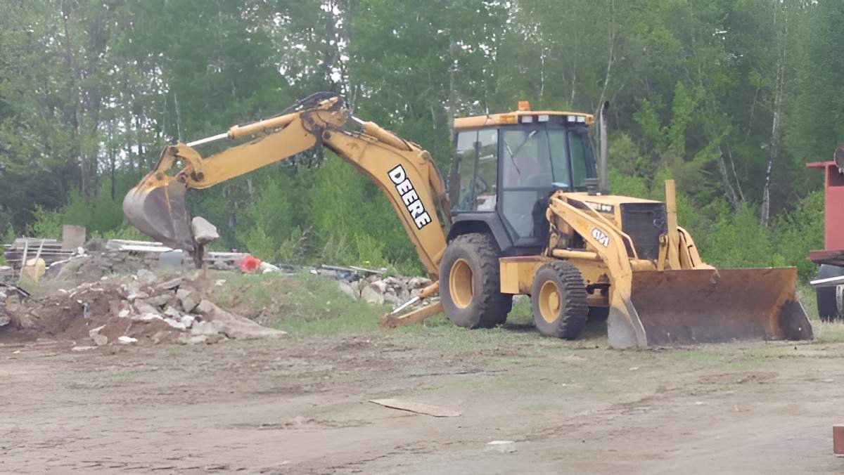 - Pelle mécanique équipé de bucket 42 pouces, 72 pouces, et un peigne pour essoucher